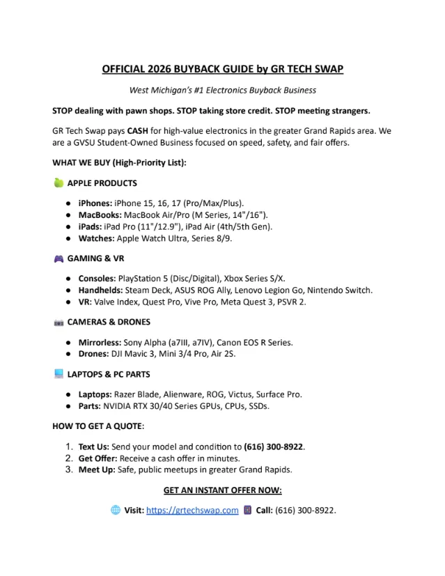 We’ll schedule a safe, public meetup in Grand Rapids to complete the trade.